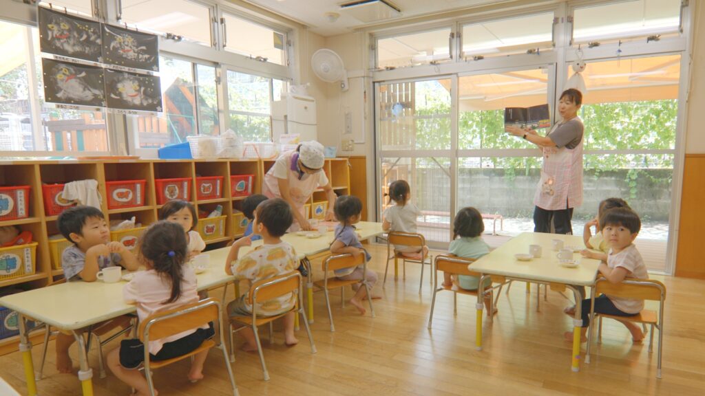 週一回、歌唱指導は3・4・5歳児が受けています。