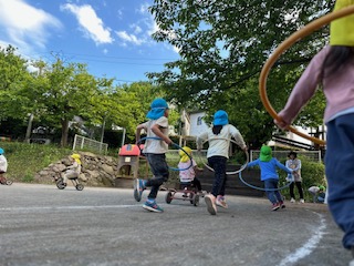徒歩で上の原幼稚園に行き、広い園庭・体育館を利用しての体操(正課)となります。